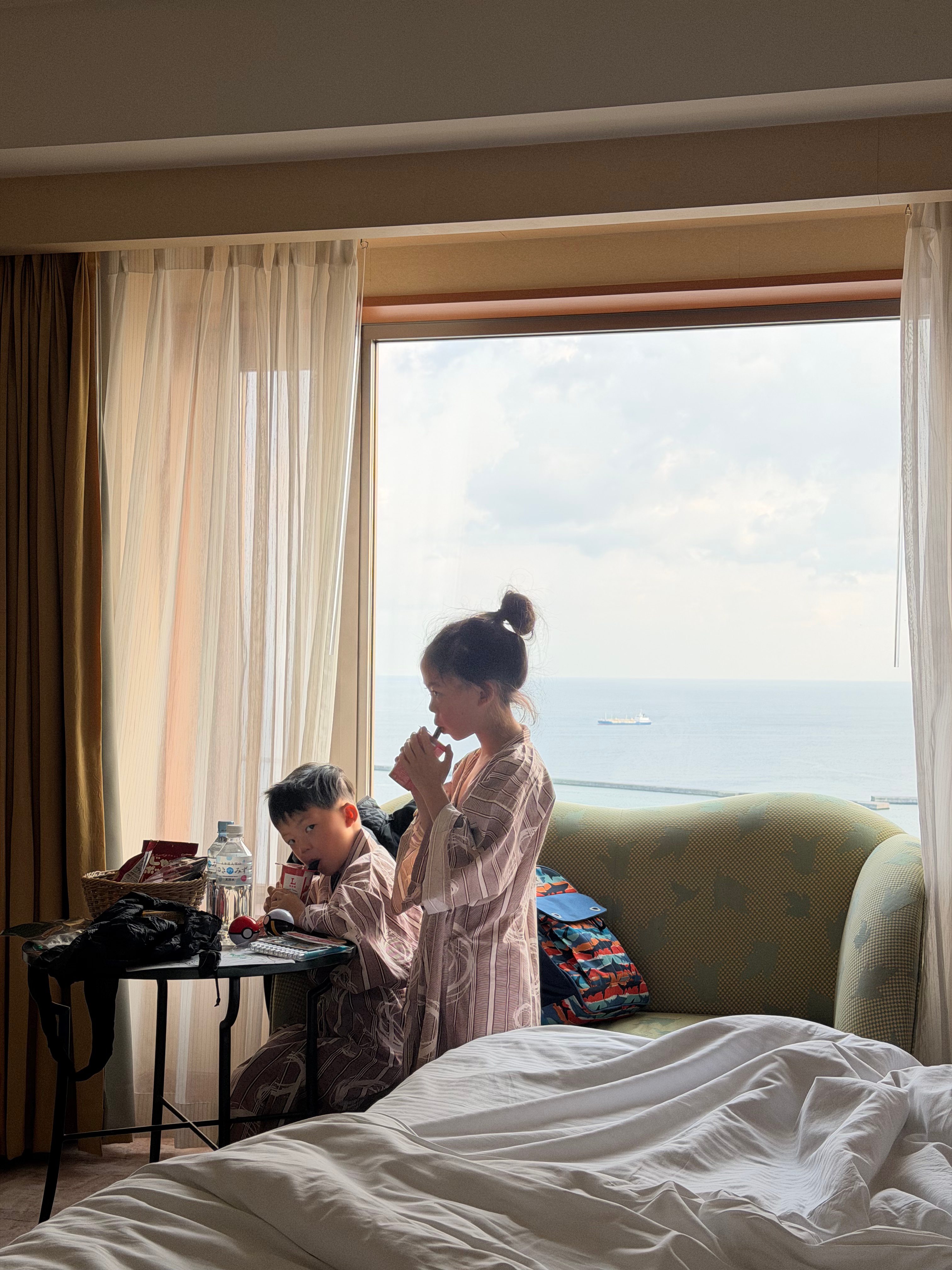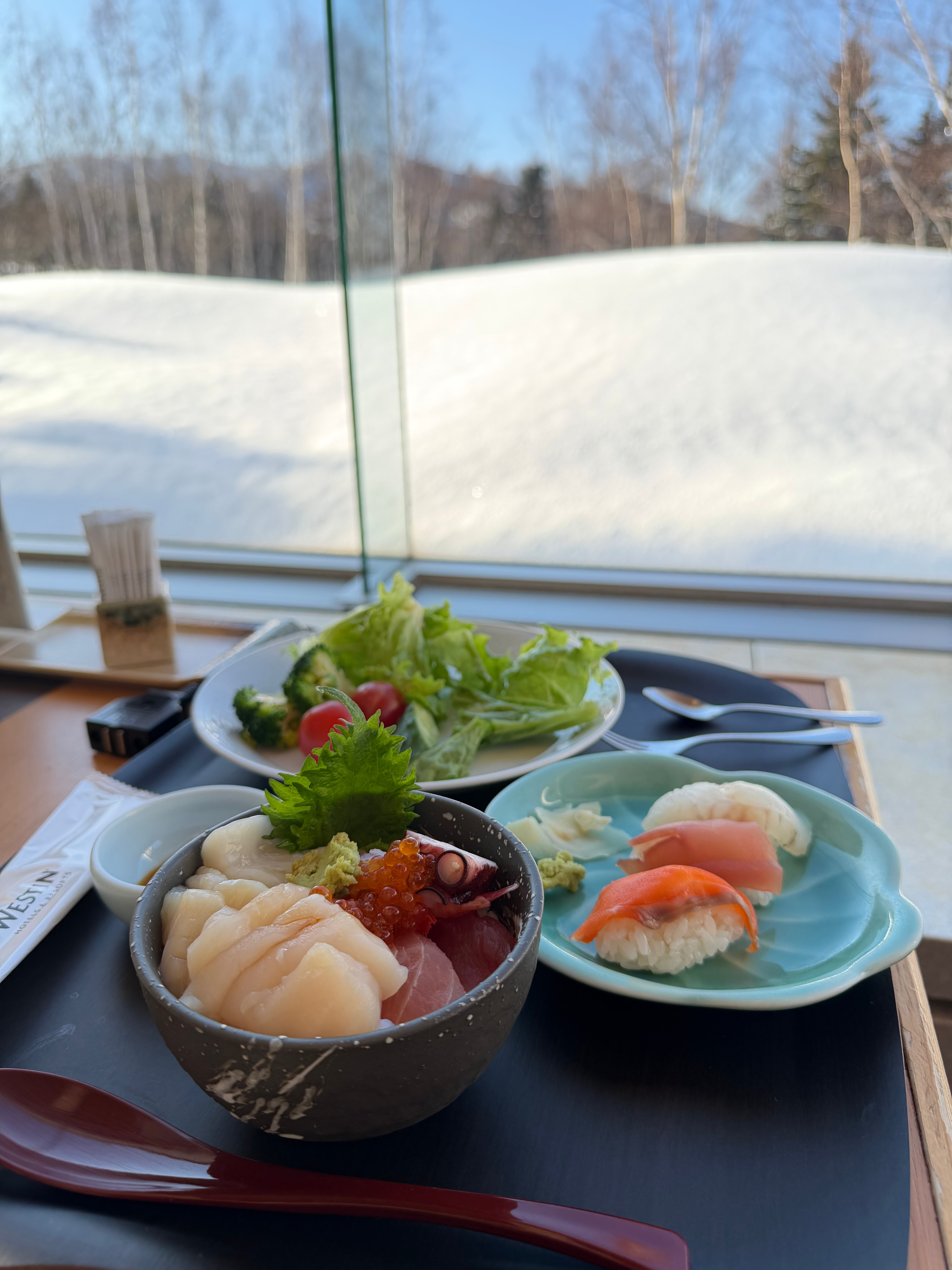 Accommodations: The Westin Rusutsu Resort is located at one of the most popular ski areas in Hokkaido. When first stepping into the Westin Rusutsu Resort, you are greeted with their beautiful atrium lobby which is bright and airy. We stayed in a Deluxe King room which had 1 bedroom and a bi-level loft with a murphy bed in the living room. The room was perfect for our family of 4 and we loved waking up to the gorgeous views from multiple directions. The living room area was perfect for relaxing and enjoying a quick snack together.
